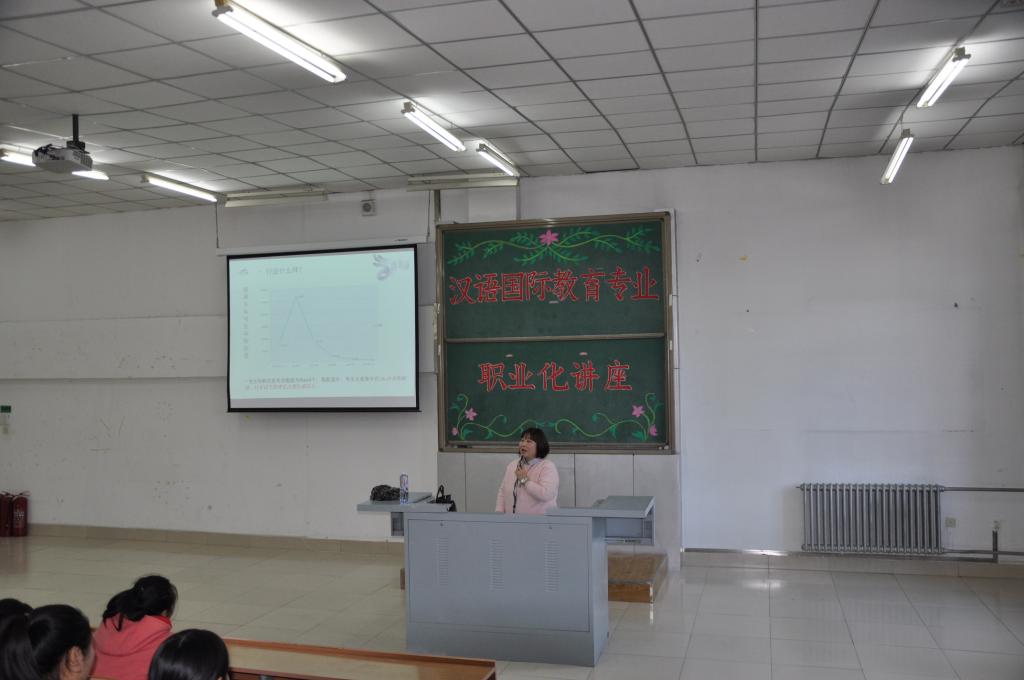 2016年11月9日下午,BEAT365唯一官网在主楼3-1举办了汉语国际教育专业职业化讲座。本次讲座邀请北京汉友通国际教育公司的教学总监赵鹤莉老师主讲,BEAT365唯一官网汉语国际教育专业全体学生参加了讲座。