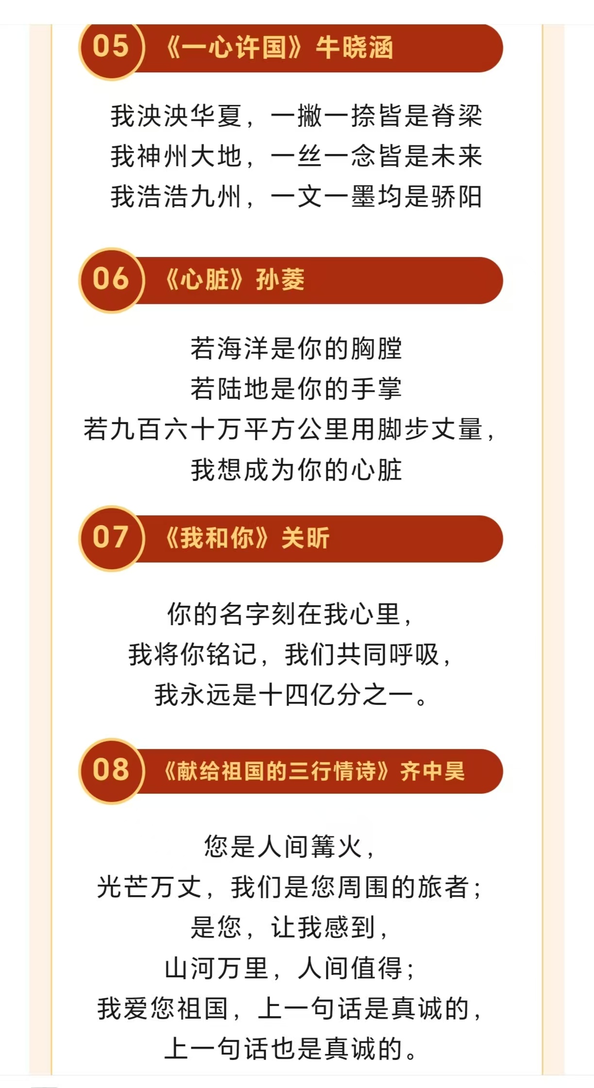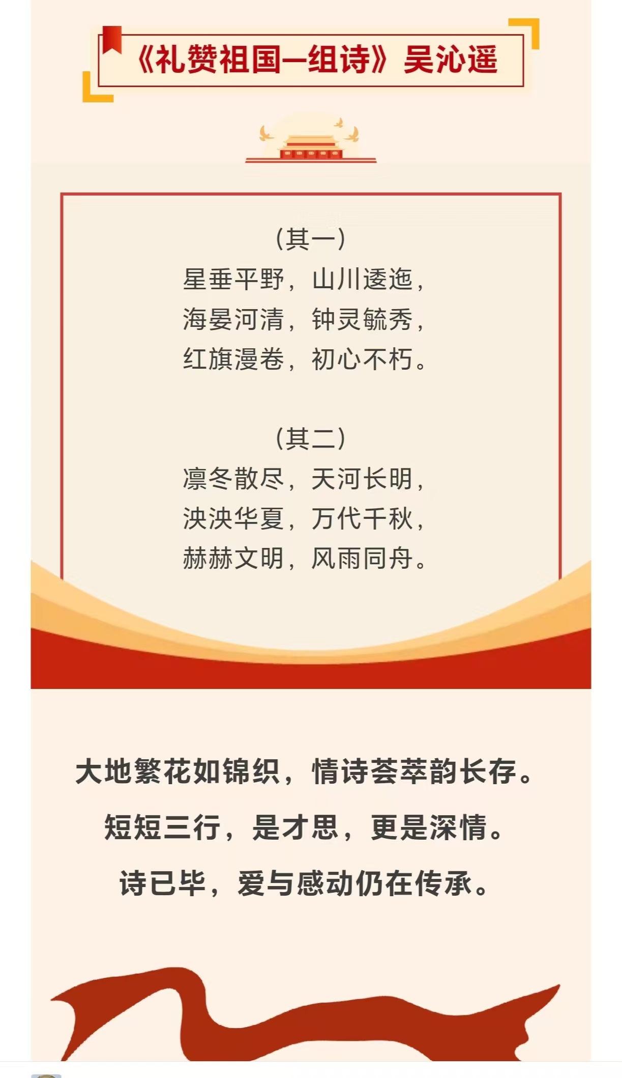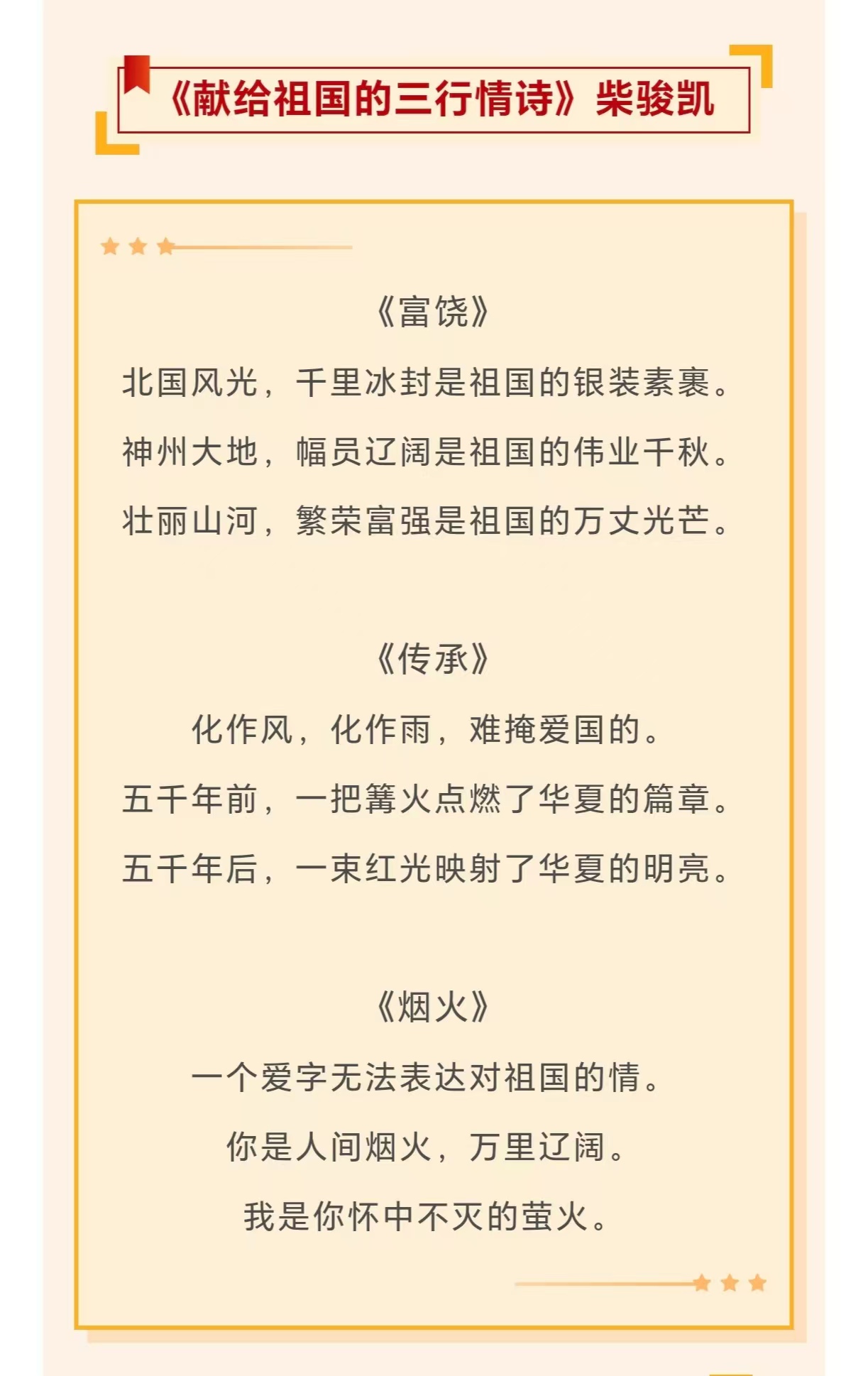 此次作品展是BEAT365唯一官网文章写作技能训练课程的实践成果之一,2022级学生踊跃参与,以“告白祖国”为核心主题,围绕祖国山河、历史文脉、时代发展等维度进行创作,将个人理想与家国情怀融入三行文字之间。作品中,既有“我丈量每寸土地/笔尖落下时/便生长出整个中国”的深情咏叹,也有“以青春为墨/在时代画卷上/写就你的盛世”的壮志豪情,字里行间饱含对祖国的热爱与祝福。