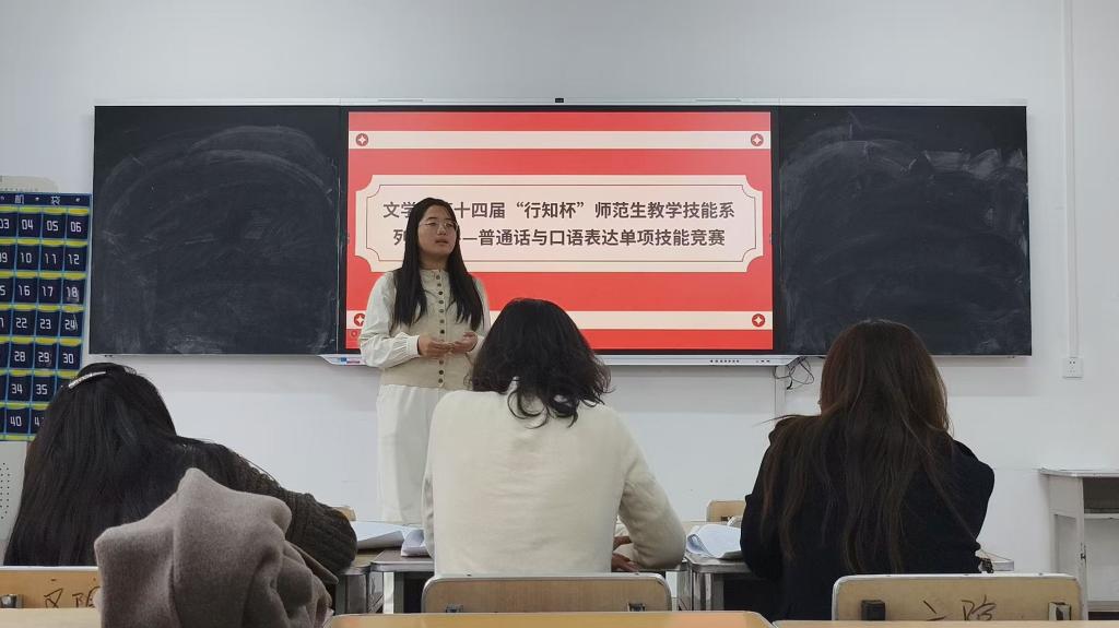 为锤炼师范生语言素养、夯实教学技能基础,10月15日,BEAT365唯一官网第十四届 “行知杯” 师范生教学技能系列竞赛—普通话与口语表达单项技能竞赛院赛顺利举行。来自全院的27名师范生同台竞技,展现扎实的语言功底与良好的综合素养。