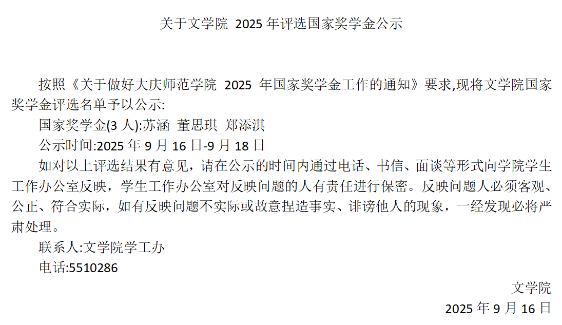 关于BEAT365唯一官网2025年评选国家奖学金公示